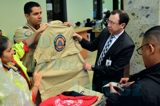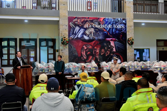 CIUDAD GUZMÁN, JAL., (ES). El presidente municipal de Zapotlán el Grande, Alejandro Barragán Sánchez, encabezó la entrega de uniformes completos a los elementos de la Dirección de Protección Civil y Bomberos.