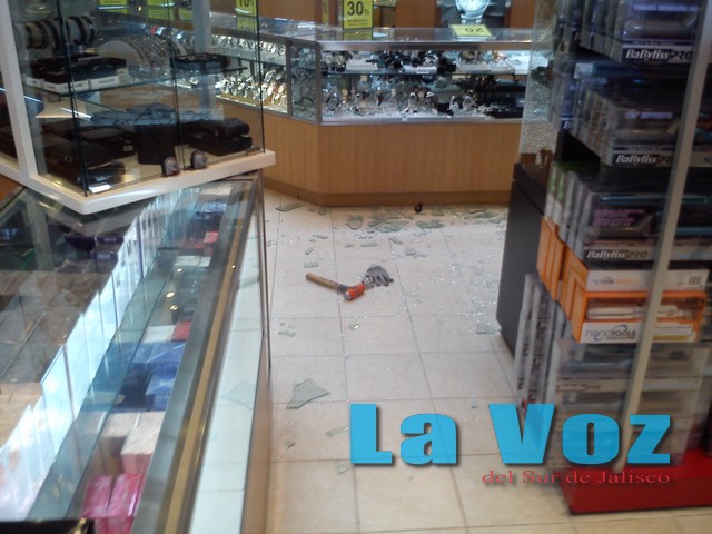 CIUDAD GUZMAN, JAL., (ES).- Intensa movilización de unidades de emergencia se registró la mañana del domingo 9 de febrero luego de que varios sujetos ingresaran a la tienda departamental La Marina en el centro comercial Plaza Zapotlán y se apoderaran de joyería y relojes por más de un millón de pesos. Los hechos ocurrieron el domingo 9 de febrero alrededor de las 11:20 de la mañana, cuando seis sujetos ingresaron al área de joyería de la tienda departamental La Marina, y tras amenazar a las empleadas comenzaron a romper los vidrios de los aparadores para apoderarse de varios relojes y joyería, luego salieron a toda prisa de la tienda y abordaron una camioneta tipo Caravan que más tarde fue encontrada abandonada. Personal de Seguridad Pública municipal arribó al centro comercial tras la alarma, señalando los empleados que fueron seis sujetos con acento del Distrito Federal  los que cometieron el asalto dándose a la fuga a bordo de una camioneta tipo Caravan, que los esperaba sobre la avenida Alberto Cárdenas, por lo que de inmediato se implementó un operativo para dar con el paradero de los sujetos aunque no lograron localizarlos. Debido a la forma de realizarse el asalto, mismo que dur[o tan solo unos minutos, algunas empleadas y clientes de la tienda sufrieron una crisis nerviosa por lo que fueron atendidas por paramédicos de la Cruz Roja Mexicana. Extraoficialmente se supo que el vehículo había sido localizado en una calle de la ciudad y los sujetos habían abordado una camioneta de redilas, sin embargo esta versión no la confirmó ninguna autoridad. Información proporcionada por las autoridades confirmaron que el monto de lo robado ascendía a poco más de un millón y medio de pesos entre joyas y relojes. Cabe mencionar que el domingo 24 de noviembre del año 2013, un grupo de hombres armados asaltó la joyería de La Marina en Plaza San Fernando de la ciudad de Colima. Con este caso, de nueva cuenta la Dirección de Seguridad Pública Municipal de Zapotlán el Grande queda en evidencia, pues si bien no tiene a su cargo la vigilancia en el interior de ese centro comercial, queda claro que la inseguridad en nuestro municipio sigue en aumento y que no se cuenta con protocolos para enfrentar este tipo de delitos.