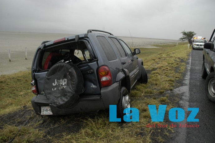 TEOCUITATLAN, JAL., (ES).- Cuatro personas lesionadas y cuantiosos daños materiales fue el saldo que dejó un aparatoso accidente registrado sobre el kilómetro 40 de la autopista Colima-Guadalajara, donde el exceso de velocidad y la intensa lluvia fueron los factores que provocaron el percance.