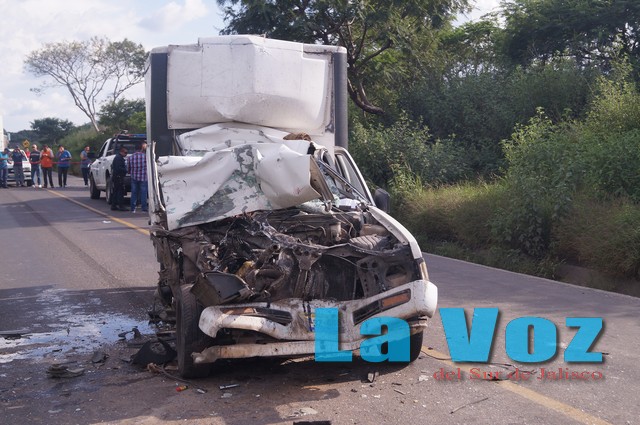 ZACOALCO DE TORRES, JAL., (ES).- Saldo de una persona muerta y otra lesionada fue el resultado del choque de una camioneta contra un camión de carga.
