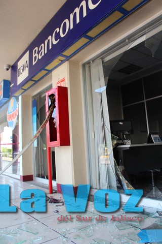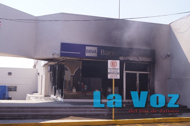 Cerca de las 10:00 de la mañana los habitantes de la ciudad se impactaron al observar una larga columna de humo que salía de Plaza Zapotlán (al sur de la comunidad). El panorama era producto del ataque con fuego a la sucursal bancaria de Banamex, establecimiento que quedó totalmente calcinado y donde se dejaron millonarias pérdidas materiales.