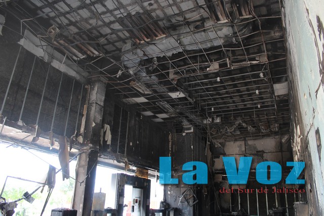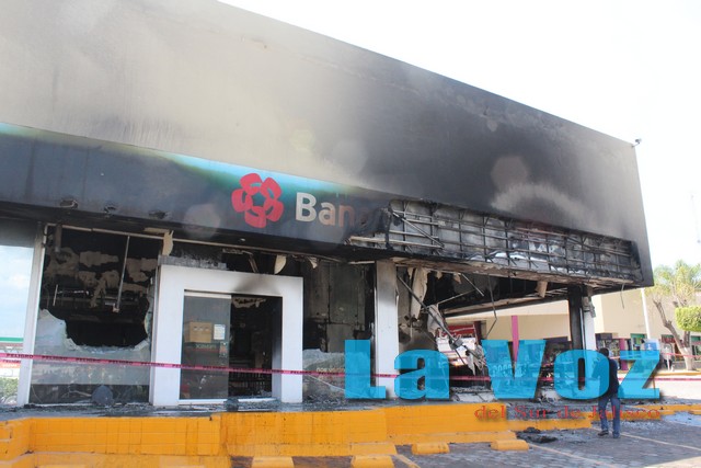 En la cabecera municipal también fue invadido por las llamas un banco de la empresa Bancomer