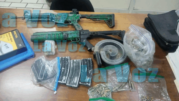 Al inspeccionar el automotor, las autoridades aseguraron un fusil, un aditamento lanza granada, una granada de fragmentación, 253 cartuchos de diversos calibres y diez cargadores, además de encontrar una bolsa con 29 envoltorios con marihuana y una caja con 26 cigarros que contenían 50 gramos del estupefaciente.