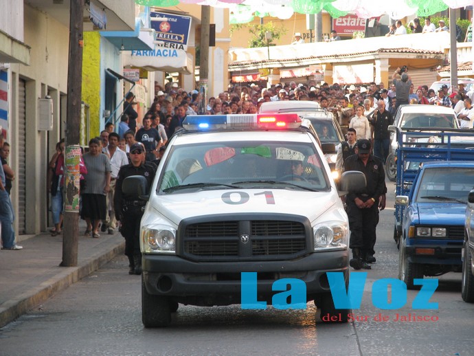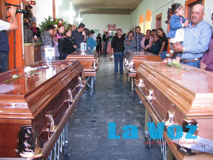 Al filo de las 08:30 horas, arribó a la presidencia municipal el primero de los cuatro cuerpos, el cual iba acompañado por familiares y amigos. Minutos más tarde llegaron los restos de sus tres compañeros y en medio de aplausos, llantos y el canto de un mariachi y un grupo norteño, los féretros ingresaron al interior del palacio municipal en donde los presentes oraron por su eterno descanso por espacio de varios minutos.