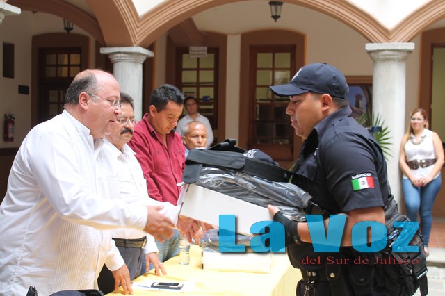 Con un reconocimiento por la ardua labor realizada por elementos de Seguridad Pública de Tamazula de Gordiano, el presidente municipal, Francisco Javier Álvarez Chávez y compañeros regidores, encabezaron el acto de entrega de uniformes, material de apoyo y equipo al cuerpo policíaco.