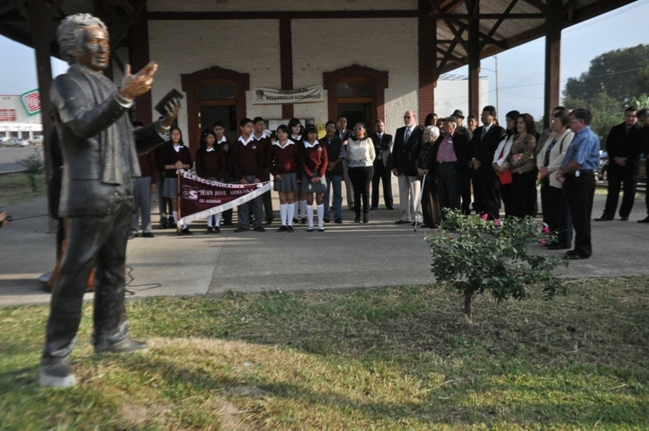 CIUDAD GUZMAN, JAL., (ES).- Autoridades del Centro Universitario del Sur (CUSur), del gobierno de Zapotlán El Grande y familiares, recordaron al escritor Juan José Arreola, en el 94 aniversarios de su nacimiento en esta ciudad, al colocar ofrendas florales en la efigie en su honor en la Antigua Estación del Ferrocarril.