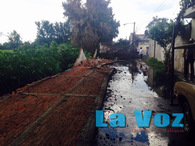 CIUDAD GUZMÁN, JAL., (ES).- Los fuertes vientos que se han presentado durante la semana que recién concluye, y la lluvia que cayó en Zapotlán el Grande la tarde del 27 de agosto, provocaron que un árbol de gran altura cayera y se llevara consigo un muro en la colonia Santa Rosa.