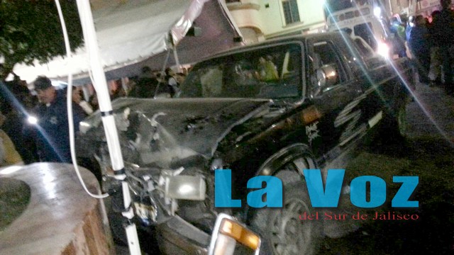 TAMAZULA DE GORDIANO, JAL., (ES).- Gran susto provocó una camioneta que se quedó sin frenos y se metió al jardín principal de la cabecera municipal.