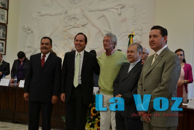 CIUDAD GUZMAN, JAL., (ES).- El Gobierno Municipal de Zapotlán el Grande, con motivo del Aniversario de los 480 años de la fundación hispánica de la ciudad y el inició del XIV Festival Cultural de Ciudad Guzmán, llevó a cabo Sesión Solemne de Ayuntamiento donde también se entregó la “Presea al Mérito Ciudadano” al ex futbolista zapotlense, Agustín Moreno Verduzco. Por primera vez se llevó a cabo una consulta ciudadana, realizada en el Jardín Principal, a través de la cual la población eligió al mediocampista zapotlense, quien formará parte del “Campeonísimo”, Agustín Moreno Verduzco como el merecedor a la “Presea al Mérito Ciudadano 2013”. Nacido el 5 de febrero de 1939 en Ciudad Guzmán, Agustín Moreno debuta como internacional ante el Uda Duckla de Checoslovaquia y seleccionado nacional amateur, fue parte fundamental del sexto, séptimo y octavo título del Club Deportivo Guadalajara y seleccionado nacional para participar representando a México en el Primer Campeonato Norte, Centroamericano y del Caribe. A su retiro fungió como titular y director del máximo organismo rector del deporte en Jalisco, el “Consejo Estatal para el Fomento Deportivo” (CODE). José Luis Orozco Sánchez Aldana, presidente municipal de Zapotlán el Grande, entregó dicha presea al ex futbolista quien agradeció al Gobierno Municipal el reconocimiento a su trayectoria, así como a la ciudadanía por sus votaciones y hacerlo con ello, merecedor a dicha presea. Al final de la ceremonia, José Luis Orozco, acompañado de monseñor Braulio Rafael León Villegas, obispo de la Diócesis de Ciudad Guzmán; así como de Salvador Barajas del Toro, diputado federal, Roberto Mendoza Cárdenas, diputado local, y Agustín Moreno Verduzco, llevaron a cabo el tradicional corte de pastel, por la celebración de los 480 años de la Fundación Hispánica de la Ciudad.