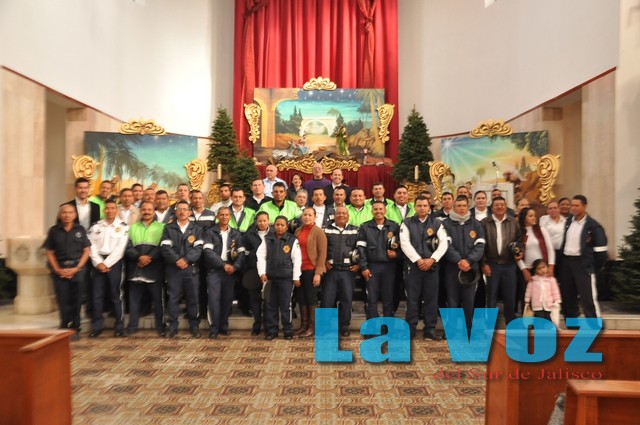 CIUDAD GUZMAN, JAL., (ES).- El gobierno de Zapotlán el Grande, festejó a los agentes de Tránsito y Vialidad Municipal por su día social, con una significativa misa en el Templo de La Merced donde dieron gracias por los beneficios recibidos en este año que está por concluir. Los festejados estuvieron acompañados por el alcalde municipal, José Luis Orozco Sánchez Aldana y su esposa, la señora Mónica Reynoso de Orozco, presidenta del Sistema DIF Zapotlán; quienes aprovecharon para desear a todos los presentes una feliz navidad. Una vez terminada la celebración eucarística, los festejados se trasladaron a un conocido restaurante ubicado en el centro de la ciudad, donde se les ofreció un desayuno para terminar la celebración del Día Social del Agente Vial.