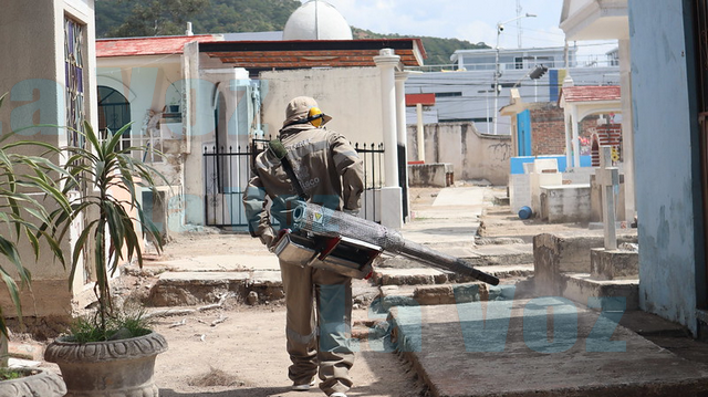 Personal de Vectores de los Servicios de Salud Jalisco y de Servicios Médicos Municipales, realizaron la fumigación de los espacios, así como la abatización de fuentes, piletas y contenedores en todos los panteones, para evitar la presencia del mosco Aedes Aegypti transmisor del dengue. Con el mismo fin, el personal de la dirección de Cementerios realizó la limpieza de maleza y retiro de materiales de desecho.