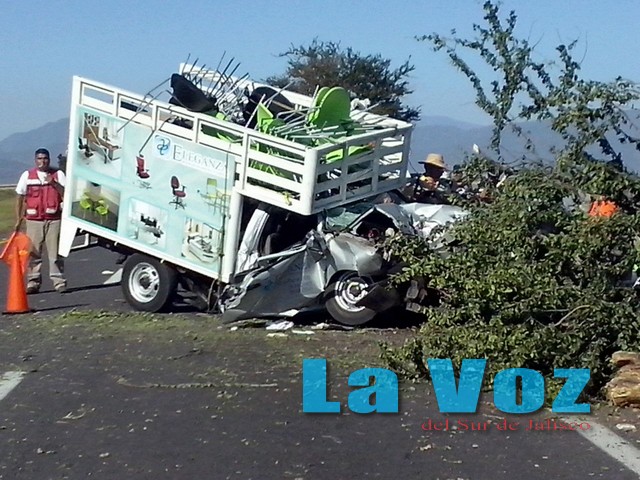 ATOYAC, JAL., (ES).- Cerca de las 1:00 de la tarde del lunes 8 de diciembre, en el kilómetro 46 de la autopista Guadalajara-Colima con dirección a la capital de Jalisco, una camioneta tuvo un percance con un árbol que dejó a uno de los que viajaban a bordo atrapado en el automotor.