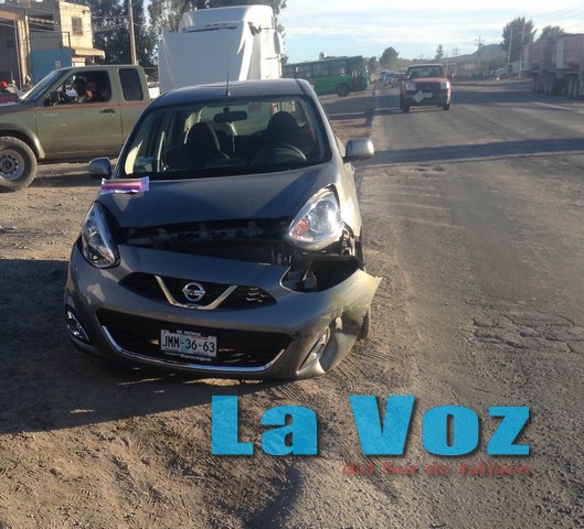 CIUDAD GUZMÁN, JAL., (ES).- La tarde del viernes 15 de enero se registró el choque entre un taxi y un vehículo compacto en el cruce del Periférico Sur con la calle Fresno.