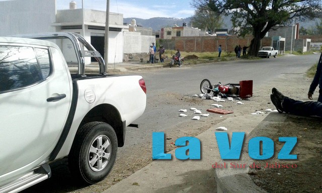 CIUDAD GUZMÁN, JAL., (ES).- Un motociclista resultó lesionado tras sufrir un accidente automovilístico donde se vio involucrada una camioneta con razón social de una empresa de estudios de ingeniería.