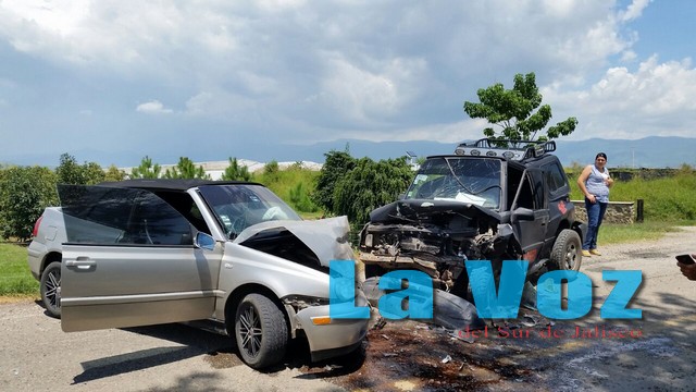 En el sitio se localizó una camioneta Chevrolet Tracker en color negro con placas de circulación JMP-4317 del estado de Jalisco, la cual se impactó de frente con un automóvil Volkswagen Cabrio en color gris con placas de circulación JLG-4594 de Jalisco.