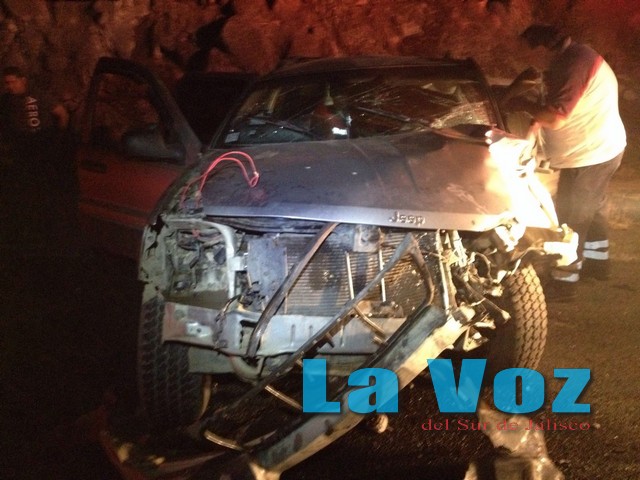Dicho automotor se impactó de frente con una camioneta Jeep Cherokee en color gris con placas de circulación PPP4275 del estado de Michoacán, donde sus tres tripulantes resultaron gravemente heridos, por lo que de inmediato fueron enviados a un hospital en Guadalajara para que recibieran atención médica.