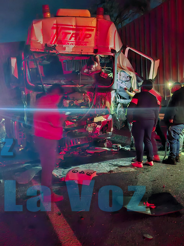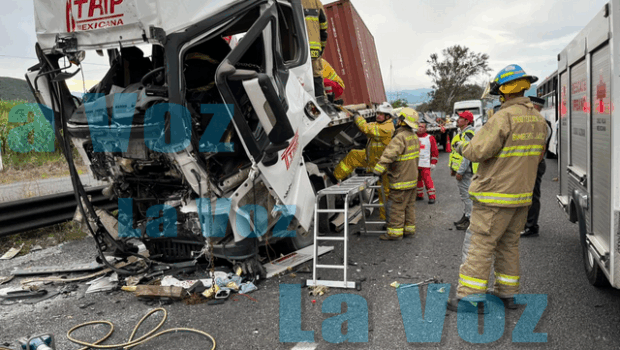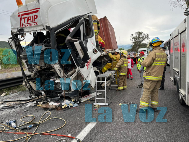 El percance fue un choque por alcance entre dos vehículos pesados, lo que provocó severos daños materiales y dejó a uno de los conductores prensado entre los fierros retorcidos de la cabina.