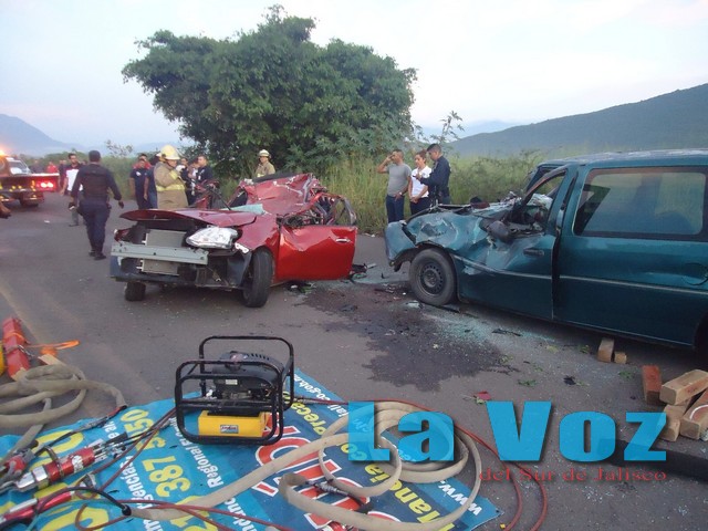 EL GRULLO, JAL., (ES).- Saldo de tres personas muertas y dos gravemente heridas fue el resultado de un aparatoso accidente registrado en la carretera que comunica a los municipios de Autlán y El Grullo, donde las víctimas eran estudiantes de bachillerato.