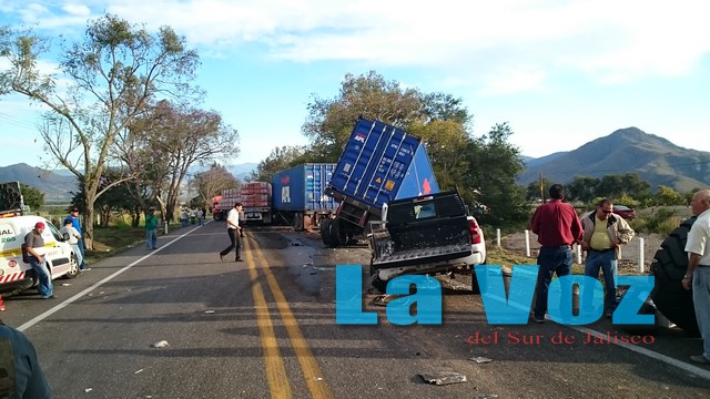 TUXPAN, JAL., (ES).- Un aparatoso choque acontecido entre tres camiones de carga causó el cierre total de la autopista Guadalajara-Colima la tarde del martes 17 de febrero.