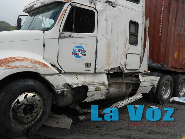TUXPAN, JAL., (ES).- Cuantiosos daños materiales dejó el choque de un camión de carga contra otros tres vehículos que circulaban a la altura del kilómetro 108 más 200 de la autopista Guadalajara-Colima. El percance tuvo lugar el miércoles 28 de agosto alrededor de las cinco de la tarde, cuando se reportó que en el primer puente de Atenquique había ocurrido un choque múltiple. De inmediato personal de la Unidad Municipal de Protección Civil de Tuxpan, se trasladaron al sitio donde encontraron una camioneta Mitsubishi Outlander modelo 2008 en color gris que era conducida por Jesús Castro Botello de 71 años y quien viajaba acompañado de Luis Fernando Castro de 30 años, ambos con domicilio en Colima y quienes resultaron ilesos. También se localizó una camioneta Ford Ranger en color gris modelo 2008 conducida por Ramón Rodríguez Anaya con domicilio en Zapopan y una camioneta Nissan en color blanco conducida por Pedro Martínez Salcedo, además de un camión marca Freighliner color blanco modelo 2002 que tripulaba Fernando Rivera Zúñiga de 43 años. Todos estos vehículos fueron impactos por un trailer marca Kenworth en color blanco que era conducido por Gerónimo Humberto Rodríguez, de 41 años, el cual manifestó que al circular por la autopista y encontrarse con el tráfico detenido le fallaron los frenos y aunque trató de esquivar a los vehículos parados, no pudo evitar golpear a varios de ellos.
