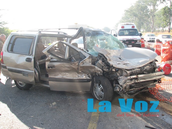 TUXPAN, JAL., (ES).- Tres personas lesionadas y cuantiosos daños materiales fue el saldo que dejó un choque múltiple sobre el kilómetro 103 de la autopista Guadalajara-Colima.