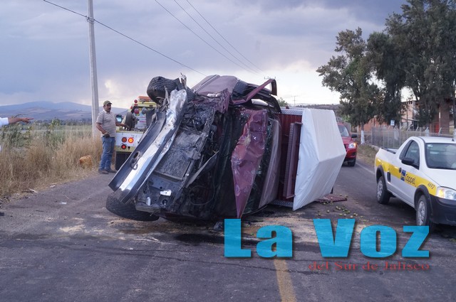 GOMEZ FARIAS, JAL., (ES).- Cuatro personas lesionadas y cuantiosos daños materiales fue el saldo que dejó un aparatoso accidente registrado sobre la carretera libre Guadalajara-Colima. El percance tuvo lugar la tarde del sábado 8 de marzo, cuando los cuerpos de emergencia recibieron un reporte donde se informaba que sobre el kilómetro 84 de la carretera libre, a la altura del rancho de Cobián, se había registrado el encontronazo entre dos vehículos. De inmediato rescatistas de Protección Civil Jalisco y personal de Tránsito del Estado se trasladaron al sitio, donde encontraron volcada una camioneta Ford Ranger en color gris con placas de circulación JM 83118 del estado de Jalisco, la cual invadió el carril contrario al salir de la curva, impactándose de frente contra una Chevrolet Sierra en color tinto con placas JP 68999 del estado de Jalisco. Debido a la velocidad con la que viajaba la camioneta ésta salió proyectada hacia un predio fuera de la carretera mientras que la Sierra volcó sobre la carretera. En el lugar resultaron lesionados el conductor de la Sierra de nombre José Aván Palacios de 41 años de edad, así como sus acompañantes Kenia Yahaira Aván Saavedra de 13 y Gael Alejandro Aván Saavedra de 9, así como el conductor de la Ranger de nombre Fidel Ambrosio Trujillo de 55 años de edad, vecino del municipio de Sayula. Hasta el lugar arribaron elementos de Seguridad Pública y Protección Civil de Gómez Farías, quienes trasladaron a los lesionados a un hospital de Ciudad Guzmán para su atención médica. Debido al percance, el carril con dirección a Ciudad Guzmán fue cerrado por espacio de varios minutos mientras que la camioneta fue retirada del lugar.