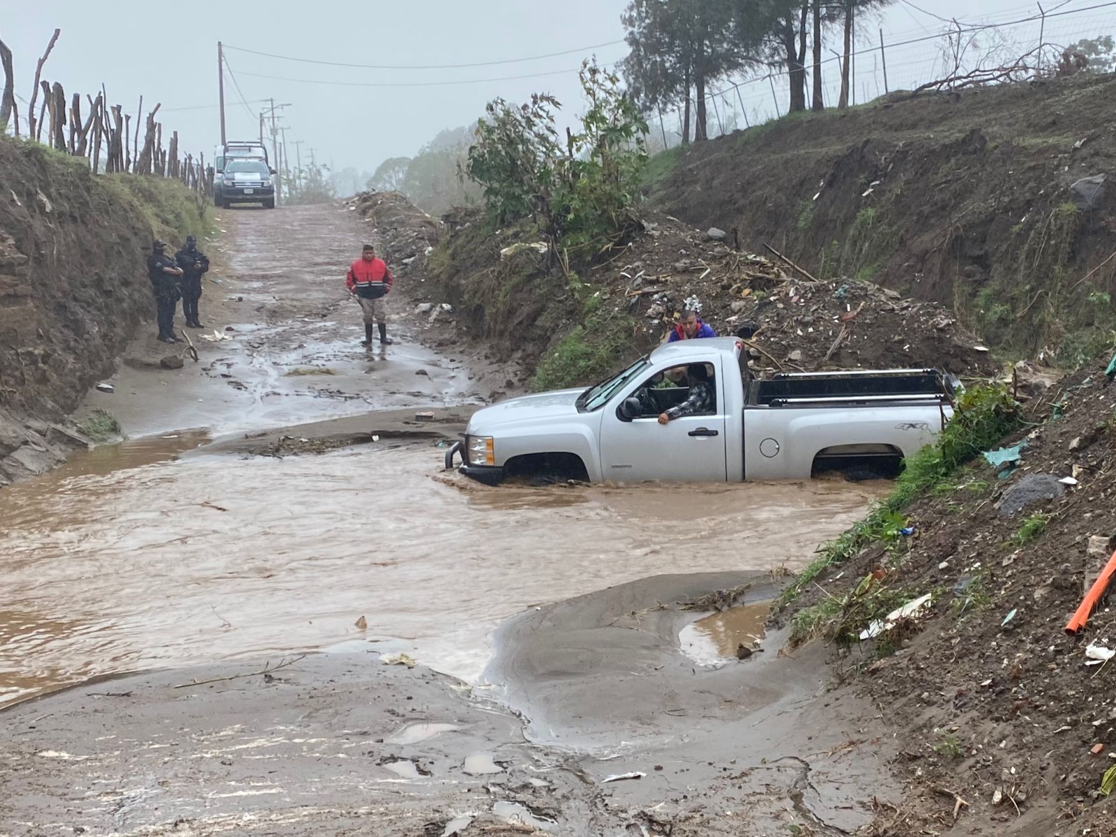 CIUDAD GUZMÁN, JAL. (ES).- La carretera libre Guadalajara-Colima ha quedado bloqueada a la circulación debido a que las intensas lluvias provocaron el desbordamiento del Río El Verde además de que se han reabierto dos grietas.