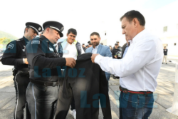 El Comisario agradeció al alcalde el apoyo brindado y le informó que “este es el tercer uniforme completo que entregamos en lo que va de la administración (…) se han entregado también otros equipos de la mejor calidad, como los cascos para los oficiales motorizados Jaguares”. Agradeció además al Secretario Ejecutivo de Consejo Estatal de Seguridad por el “apoyo en equipamiento, capacitaciones y certificaciones, que han ido fortaleciendo a la Policía de Tlajomulco en el proceso de profesionalización, para convertirla no solamente en la mejor del estado, sino del país”.