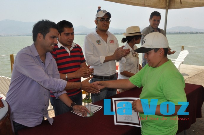 Con la Laguna de Zapotlán como sede, y las cañas de pescar listas, los niños participantes demostraron gran entusiasmo en el torneo de pesca, deporte acuático que poco a poco toma arraigo en el municipio, logrando una convivencia sana entre hijos y padres, quienes apoyaron a los niños durante las cuatro horas que duró el evento.