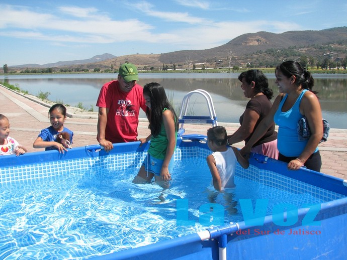 CIUDAD GUZMAN, JAL., (ES).- Con el compromiso de brindar a la ciudadanía la oportunidad de disfrutar con la familia estos días santos, la dirección de turismo municipal habilitó albercas en las instalaciones de la Laguna de Zapotlán,  así como diferentes actividades recreativas.