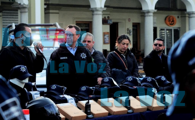 Barragán Sánchez señaló en su discurso que los policías municipales no contaban con equipo de comunicación y antes usaban la plataforma de WhatsApp para mantenerse comunicados entre ellos y de manera interna a falta de los radios.