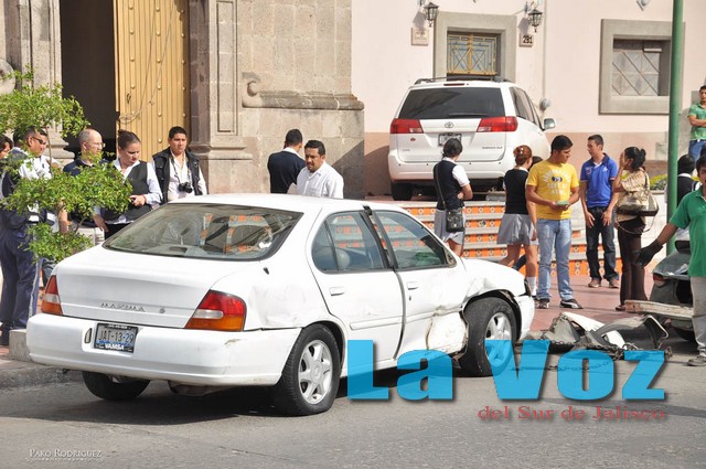 CIUDAD GUZMAN, JAL., (ES).- Gran consternación causó un aparatoso accidente registrado en el templo de San Pedro donde un vehículo familiar impacto a tres automóviles y luego se trepó a la plazoleta de la iglesia. Los hechos ocurrieron la tarde del martes 29 de abril cuando el sacerdote Martín Salvador Trujillo de 76 años de edad, se impactó contra tres vehículos para terminar sobre las escalinatas del templo de San Pedro ubicado en la calle Primero de mayo de Ciudad Guzmán, iglesia de la que el autor de los hechos es párroco. El conductor perdió el control de su camioneta Toyota Sienna modelo 2004, la cual se proyectó a gran velocidad contra una Nissan Máxima modelo 1998, un Volkswagen en modelo 1973; éste, a su vez, estrelló por la parte trasera a un Nissan Sentra 1998. Versiones de los testigos señalaron que la camioneta que provocó el percance apenas había salido de la cochera de la misma iglesia y sólo avanzó unos metros cuando su conductor dio un volantazo que provocó que finalmente terminara sobre el atrio. Paramédicos de la Cruz Roja acudieron para valorar médicamente a los ocupantes de los vehículos, quienes sufrieron una crisis nerviosa debido al fuerte choque.