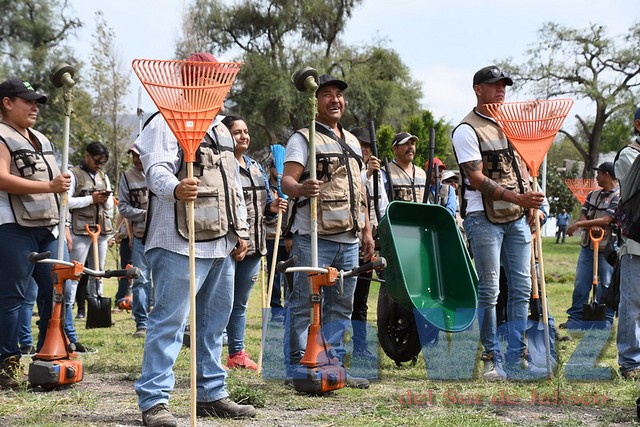 “Aquí estamos en el vaso regulador de Eucaliptos y el día de hoy les quiero presentar a la Liga de la Limpieza, que serán 100 funcionarios de gobierno de Tlajomulco que estarán en las diferentes comunidades trabajando en todos nuestros espacios públicos, en nuestras áreas verdes, en nuestros canales, en nuestros arroyos, en nuestras calles por supuesto”, explicó el primer mandatario.