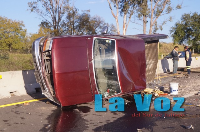 TUXPAN, JAL., (ES).- Cuantiosos daños materiales y el cierre temporal de un carril de la autopista Guadalajara-Colima, fue el saldo que dejó la volcadura de una camioneta en el tramo comprendido entre los municipios de Tuxpan y Ciudad Guzmán.