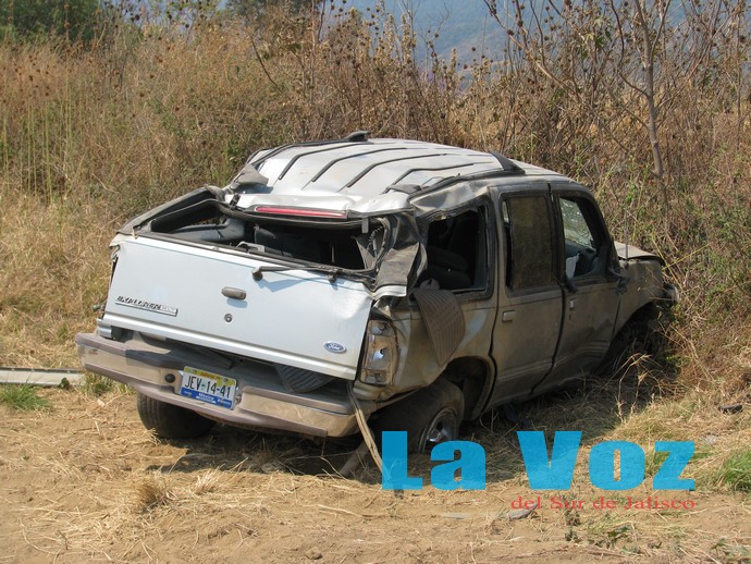 La volcadura tuvo lugar la mañana del domingo 14 de abril en la carretera Ciudad Guzmán-El Grullo, cerca de la delegación de El Fresnito, después de que una camioneta Ford Explorer en color verde con placas de circulación JEV1441 del estado de Jalisco, saliera de la carretera en una curva dando varias volteretas hasta que finalmente se detuvo sobre sus cuatro ruedas.