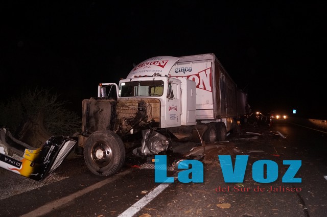Afortunadamente en el fuerte choque no hubo personas lesionadas, pero fue necesaria la presencia de bomberos de Ciudad Guzmán, Sayula y Gómez Farías, quienes tuvieron que ingresar hasta el lugar del accidente en sentido contrario por diez kilómetros debido a la falta de retornos en la zona.