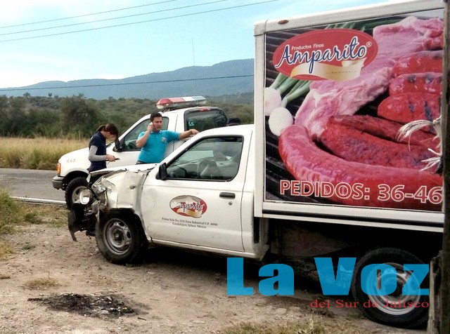 CIUDAD GUZMÁN, JAL., (ES).- La falta de precaución de los conductores provocó el viernes 18 de diciembre un fuerte choque en la carretera libre Guadalajara-Colima, en el tramo Acatlán de Juárez-Ciudad Guzmán, percance que dejó como saldo cuantiosas pérdidas materiales y afortunadamente ningún lesionado.