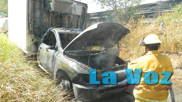 TUXPAN, JAL., (ES).- Cuantiosos daños materiales fue el saldo que dejó el incendio de una camioneta de tres toneladas en una brecha cercana a la cabecera municipal de este municipio.