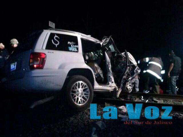 SAYULA, JAL., (ES).- Cuatro personas lesionadas, dos de ellas de gravedad, es el saldo que dejó un aparatoso accidente luego de que un grupo de personas terminara su parranda al impactarse contra el ferrocarril. El aparatoso accidente tuvo lugar la madrugada del domingo 6 de julio en el municipio de Sayula, luego de que dos parejas se divertían a bordo de una camioneta Jeep Cherokee en color blanco y tras consumir algunas bebidas embriagantes la combinación con el volante se convirtió en un hecho trágico ya que el conductor de la misma aceleró a fondo pretendiendo ganarle el paso al ferrocarril. Tras alcanzar una velocidad considerable, la camioneta se impactó contra el costado del tren quedando atrapados al interior de la misma sus ocupantes identificados como Ricardo Vega Vázquez, de 23 años, José Ascensión Contreras Cornelio, de 28 años, Janet González Ordaz y Ana Casillas Mejía. Paramédicos de la Cruz Roja Mexicana y Protección Civil de Sayula, arribaron al sitio y lograron rescatarlos a todos para trasladarlos de urgencia a hospitales de Sayula y Ciudad Guzmán debido a las fuertes lesiones que presentaban.