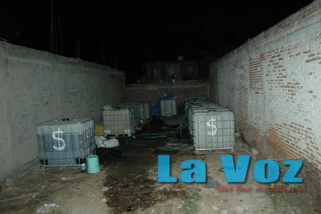 CIUDAD GUZMAN, JAL., (ES).- Intensa movilización de corporaciones policías provocó el hallazgo de un predio en la colonia Pastor de Arriba en el que se comercializaban combustibles en forma clandestina. Fue una llamada anónima registrada la noche del miércoles 15 de enero la que alertó a los cuerpos de emergencia sobre un fuerte olor a gasolina en los alrededores de las calle Tolimán, en la colonia Pastor de Arriba, por lo que de inmediato personal policíaco se trasladó al sitio para realizar las investigaciones correspondientes, y se llevaron la sorpresa de que en el lote baldío marcado con el número 470 se encontraban 16 contenedores de mil litros cada uno que contenían diésel y gasolina. De inmediato se montó un fuerte dispositivo de seguridad y se alertó al agente del Ministerio Público Federal, quien por la mañana se trasladó al sitio para tomar conocimiento de los hechos, al igual que oficiales de la Policía Federal Preventiva y personal de Petróletos Mexicanos para posteriormente clausurar el sitio y decomisar el combustible que era vendido en forma clandestina y sin ninguna medida de seguridad, y que presumen las autoridades se trata de material robado.