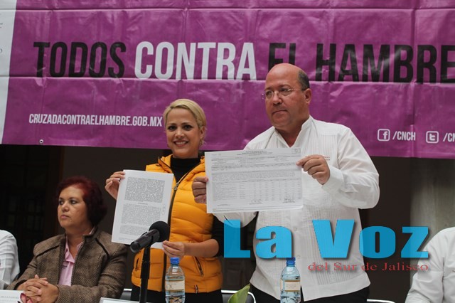 El pasado 22 de octubre la Delegada Federal de SEDESOL, Gloria Judith Rojas Maldonado, visitó el municipio de Tamazula para realizar la entrega de apoyos del Programa de Recurso Programa PET y Programa Jornaleros Agrícolas. La ceremonia de protocolo se realizó en el patio de presidencia municipal, y el presídium estuvo conformado por el Presidente Municipal de Tamazula, Francisco Javier Álvarez Chávez; Sandra Cristina Padilla de Álvarez, Presidenta del Sistema DIF Municipal; Lic. Juan Manuel Alcaraz Arreola, Secretario General del Ayuntamiento; el Regidor, Eduardo Moreno Hernández y el Coordinador de Programas y Áreas de Apoyo Grupos Prioritarios, Lic. Fernando Guzmán Arredondo. Durante el acto se realizó la firma del Convenio para entrega de recurso para la rehabilitación de viviendas en el albergue Soyatlán de Afuera y Alimentación de los niños hijos de jornaleros agrícolas migrantes en los Albergues de Arroyo Hondo, Ex Hacienda y Soyatlán. En su mensaje el primer edil agradeció a la Delegada Federal por el apoyo que hasta el momento ha recibido el municipio de Tamazula, sobretodo las personas con mayor grado de vulnerabilidad, y una vez más refrendó el compromiso con la población tamazulense para continuar su gestión ante el gobierno federal y estatal. Por su parte la delegada federal de SEDESOL mencionó que su presencia en Tamazula se debía a la gestión que ha realizado el presidente municipal Álvarez Chávez, comprometiéndose a trabajar en beneficio de las personas que más necesitan de apoyos, ya que esa es la indicación por parte del presidente de la república Enrique Peña Nieto. Del mismo modo aprovechó la oportunidad para anunciar la implementación del nuevo programa federal: Cruzada Contra el Hambre, el cual pretende cubrir las necesidades básicas como alimentación, estudio de sus hijos e incentivos económicos.