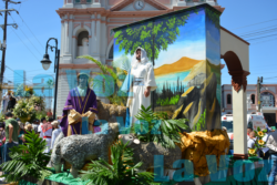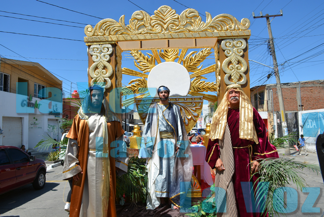 Tras el sermón y la firma del compromiso por parte de los cargadores, las imágenes salieron con destino al Santuario de Nuestra Señora de Guadalupe, donde fueron asegurados en el trono para partir junto a decenas de danzantes provenientes de Tuxpan, Gómez Farias y Zapotlán, además de los 13 carros alegóricos que hacían alusión a algunas parábolas de la Biblia.