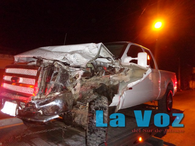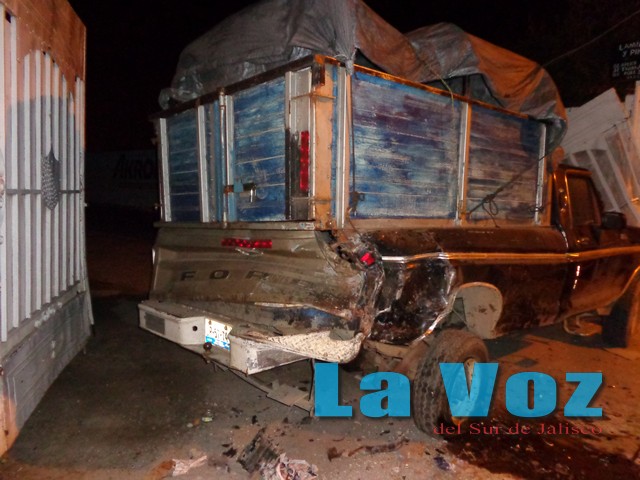 CIUDAD GUZMAN, JAL., (ES).- La imprudencia y el exceso de velocidad provocaron un aparatoso accidente que dejó cuantiosos daños materiales. Los hechos ocurrieron la madrugada del lunes 20 de enero cuando alrededor de las 3:45 horas se reportó que un vehículo había provocado un aparatoso accidente al circular por la avenida Hidalgo, entre las calles Allende y Calderón. De inmediato personal de Tránsito Municipal se trasladó al sitio del accidente, donde encontró una camioneta Ford XLT Súper Duty en color blanco y con placas de circulación JT09884 del estado de Jalisco, la cual era conducida por José Guillermo Flores de 21 años de edad y con domicilio en la calle Chapultepec de la colonia Mansiones del Real. Dicho vehículo al ser conducido a gran velocidad se impactó contra un automóvil Nissan Tsuru en color negro y posteriormente se impactó contra una camioneta Ford Pickup modelo 1978 y con placas de circulación JPS7741 de los Angeles, a la cual arrastró por más de ocho metros hasta dejarla incrustada en el portón de un taller mecánico. Tanto el vehículo como el conductor que provocó el accidente quedaron detenidos y fueron puestos a disposición del agente del Ministerio Público para que responda por los daños provocados.