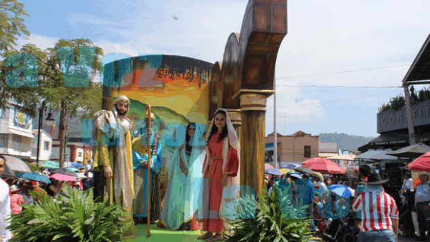 Devotos Acompañan a la Sagrada Familia en el Recorrido de los Carros Alegóricos