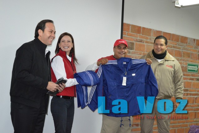 CIUDAD GUZMÁN, JAL., (ES).- El alcalde de Zapotlán el Grande José Luis Orozco y su esposa Mónica Reynoso de Orozco, presidenta del DIF Municipal, agradecieron en nombre del Gobierno Municipal y del Sistema para el Desarrollo Integral de la Familia (DIF), el apoyo de la Empresa Embotelladora Coca Cola de Ciudad Guzmán entregándoles ropa deportiva a sus empleados.