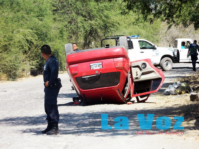 ZACOALCO DE TORRES, JAL., (ES).- Dos personas lesionadas y cuantiosos daños materiales dejó como resultado la volcadura de un vehículo compacto en la brecha que va de Zacoalco a la autopista Guadalajara-Colima.