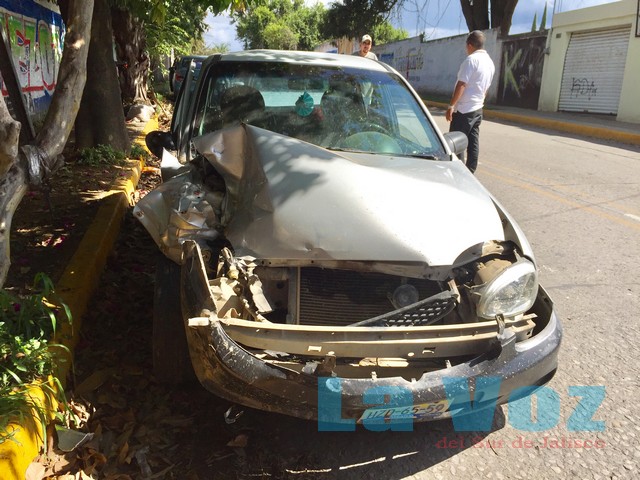 CIUDAD GUZMÁN, JAL., (ES).- Un desperfecto en uno de los neumáticos provocó que el conductor de un Chevy color arena perdiera el control del volante, originando su proyección contra una camioneta que se encontraba estacionada en los cruces de las calles Ignacio Mejía y Guerrero.