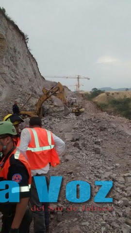 TUXPAN, JAL., (ES).- La naturaleza jugó en contra y provocó un aparatoso derrumbe de un cerro en el municipio de Tuxpan, hecho que dejó como saldo a dos personas lesionadas que realizaban trabajos en un zona aledaña para la obra en curso de la autopista Guadalajara-Colima.