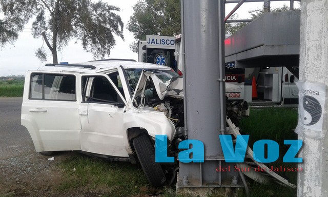 Al arribo de los servicios de emergencia encontraron una camioneta Jeep de reciente modelo en color blanco que se impactó contra uno de los postes que sostienen el puente peatonal. A pesar de lo aparatoso del accidente el afectado, quien pertenece al personal de la SEDENA, decidió ser atendido por una unidad del cuartel de Sayula