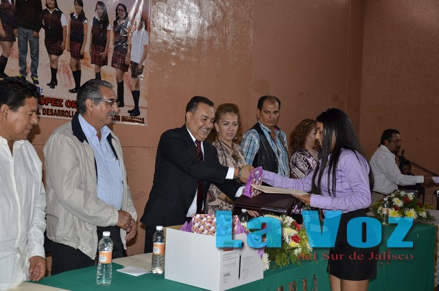 Con el nombre de “Doctor Roberto Mendoza Cárdenas”, egresa la XII generación de alumnos de la Escuela Preparatoria de Usmajac, municipio de Sayula. “Si quieres que tus hijos lleven una vida tranquila y segura, edúcalos con un poco de hambre y un poco de frío”, proverbio chino que Mendoza Cárdenas incluyó en su mensaje a los jóvenes egresados, en el acto de entrega de constancias realizado la mañana del sábado 28 de junio en dicha población. Roberto Mendoza señaló que lo más importante que se tiene en la sociedad y en el proceso de enseñanza – aprendizaje son los hijos, que en esta caso dieron un paso importante en su formación académica pero, sobre todo, para la vida, “Esta institución tan prestigiada los dotó de los conocimientos generales que los prepara para presentarse en el proceso laboral o en la continuidad de su formación profesional, desde hoy tendrán que decidir el ejercicio profesional futuro que habrán de desempeñar, hago un reconocimiento a todos los maestros que lograron transmitir sus conocimientos a estos jóvenes egresados”, abundó. También reconoció y resaltó el esfuerzo hecho por los padres de familia para sostener y mantener a sus hijos en este proceso de formación, que con su conducta los egresados habrán de honrar, con el deseo de que esta generación sobresalga en el aspecto cultural, profesional y laboral, involucrándose en su oportunidad en el mercado productivo, que con el estudio y la preparación recibida les abre las puertas para lograr el éxito personal y profesional. “El futuro les pertenece, la grandeza es de ustedes, mi felicitación es a cada uno de ustedes, porque sé que ustedes harán historia”, agregó. Como padrinos de esta generación “Doctor Roberto Mendoza Cárdenas” y MVZ Leopoldo López Ordúñez, Jefe del Departamento de Programas y Proyectos Especiales, de la Comisión Nacional para el Desarrollo de los Pueblos Indígenas y como invitados especiales el alcalde de Sayula Jorge González Figueroa, además de la profesora Bertha M. López Ordúñez, directora de la preparatoria de Usmajac, Jesús Navarro Begines, delegado municipal y Rosalba Hernández Rodríguez, secretaria del Patronato de Padres de Familia.